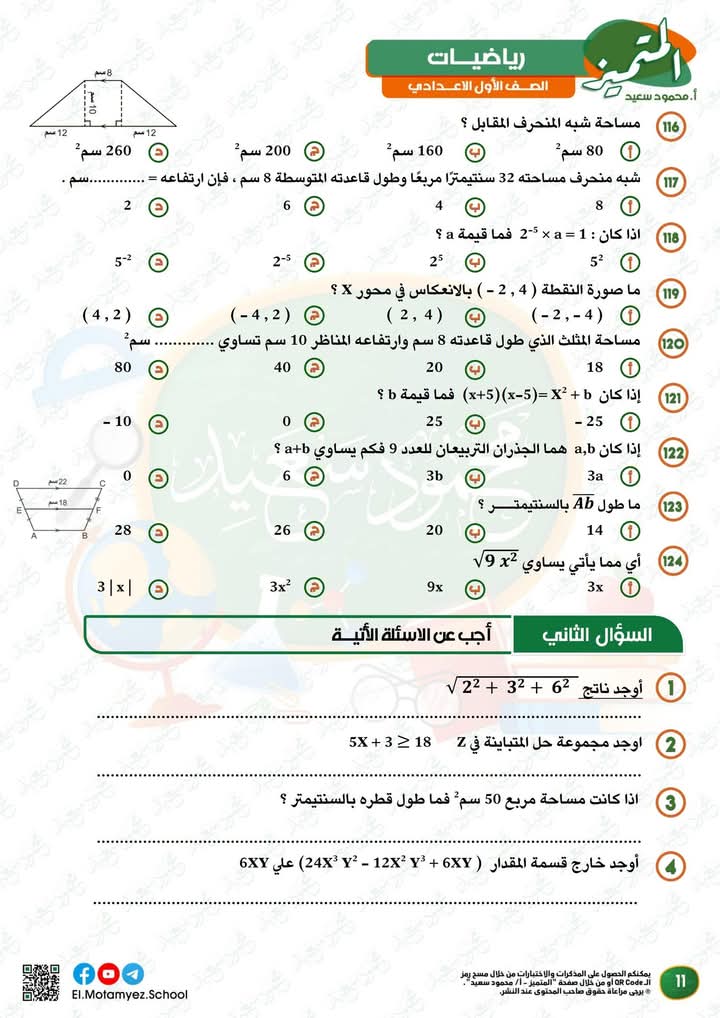 مراجعة المتميز في الرياضيات للصف الأول الإعدادي الترم الثاني بالإجابات PDF