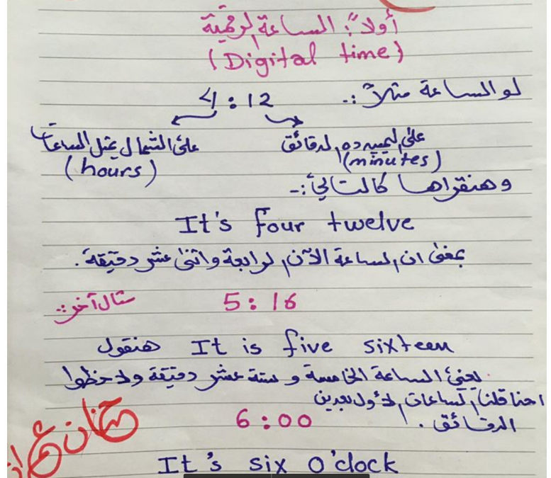 بوكليت شرح الساعة الانجليزية للمرحلة الابتدائية للدكتورة حنان عمران