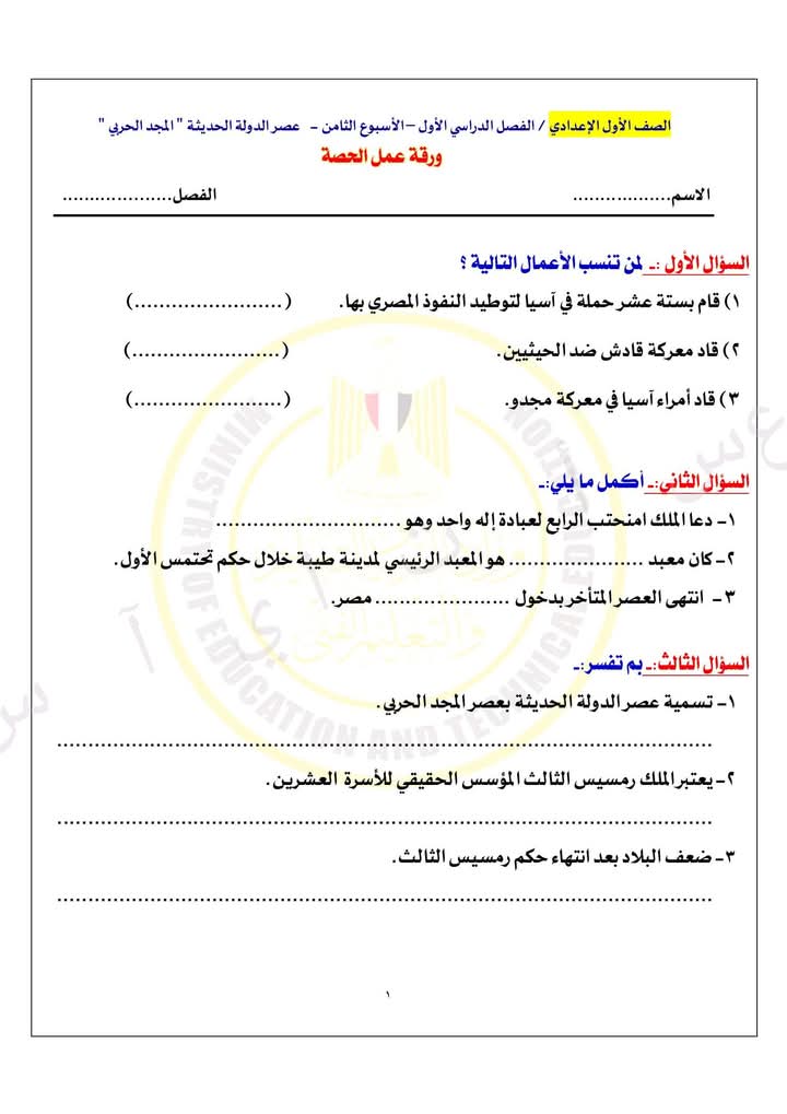 تقييمات مجمعة لن يخرج عنها الامتحان في الدراسات للصف الاول الاعدادي